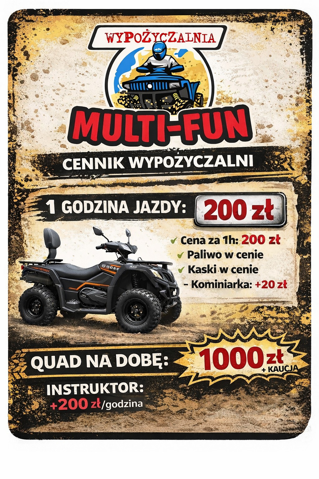 Zaprszamy do zapoznania się z cennikiem wypożayczalni quadów
